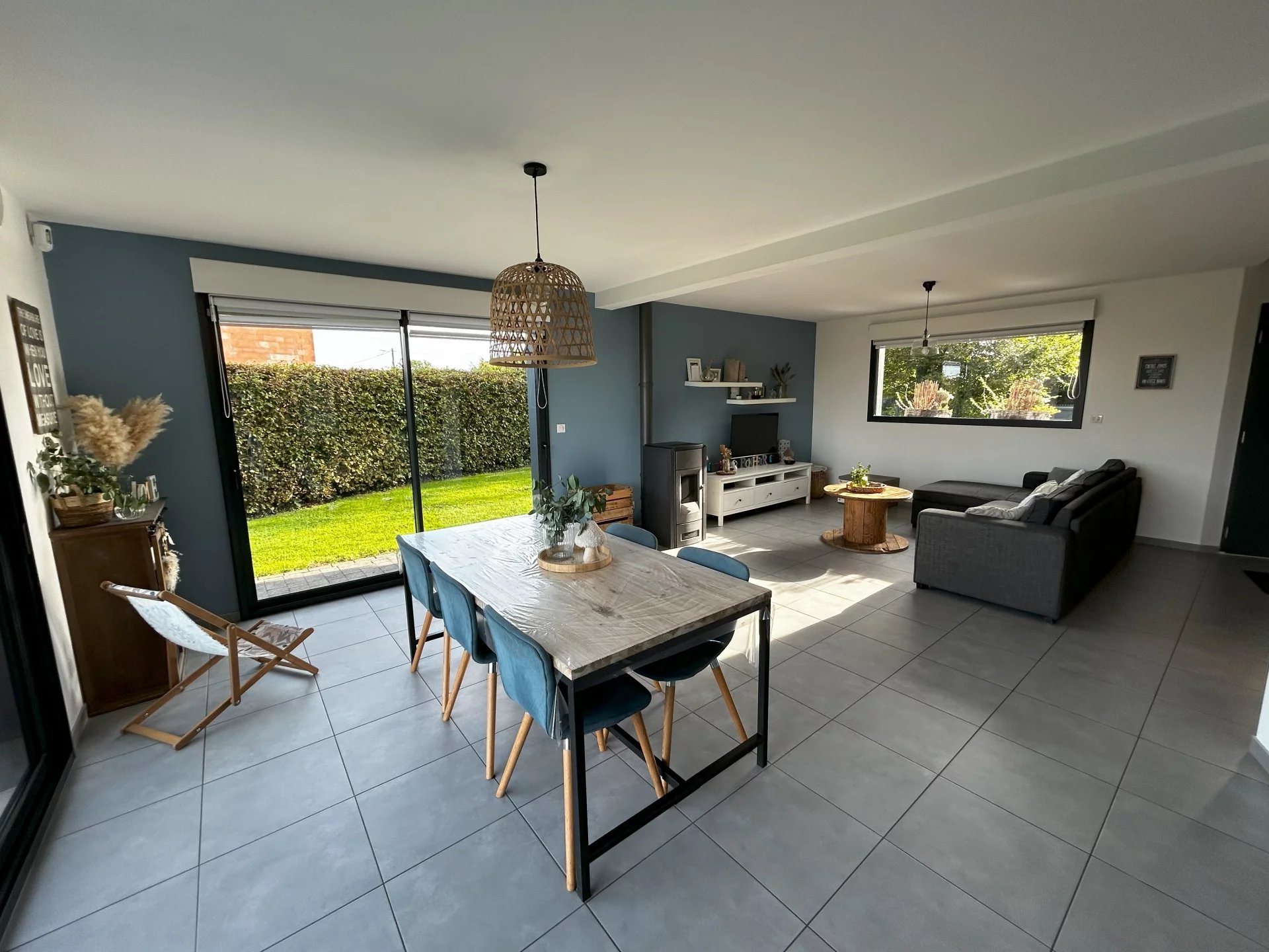 MD2072 Coup de coeur assuré pour ce pavillon indépendant récent situé à 10 minutes de Samer au coeur de la vallée comprenant séjour avec feu à pellets, cuisine équipée, cellier, trois chambres, salle de bains, grenier, garage, terrasse et jardin le tout sur 1200m2 de terrain.